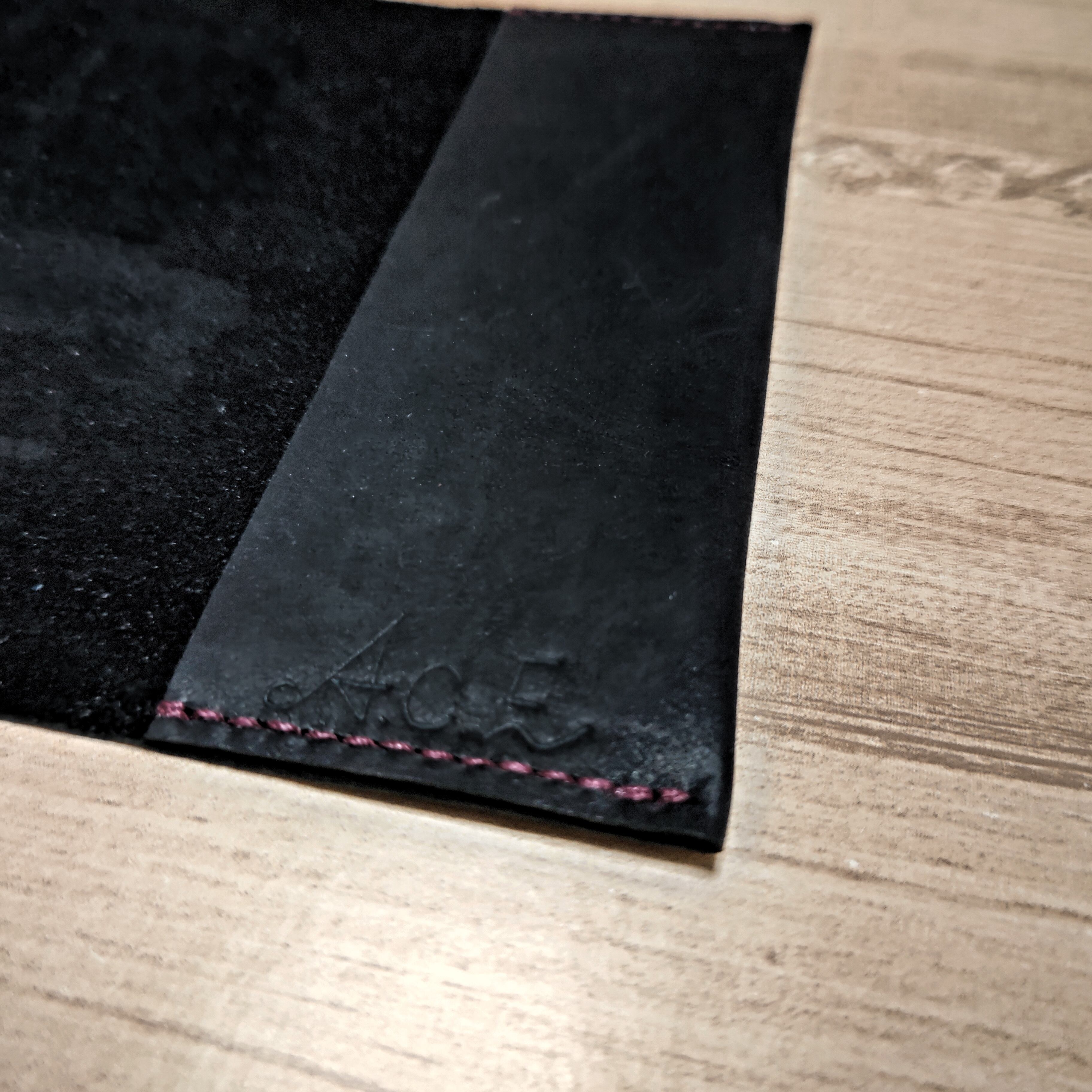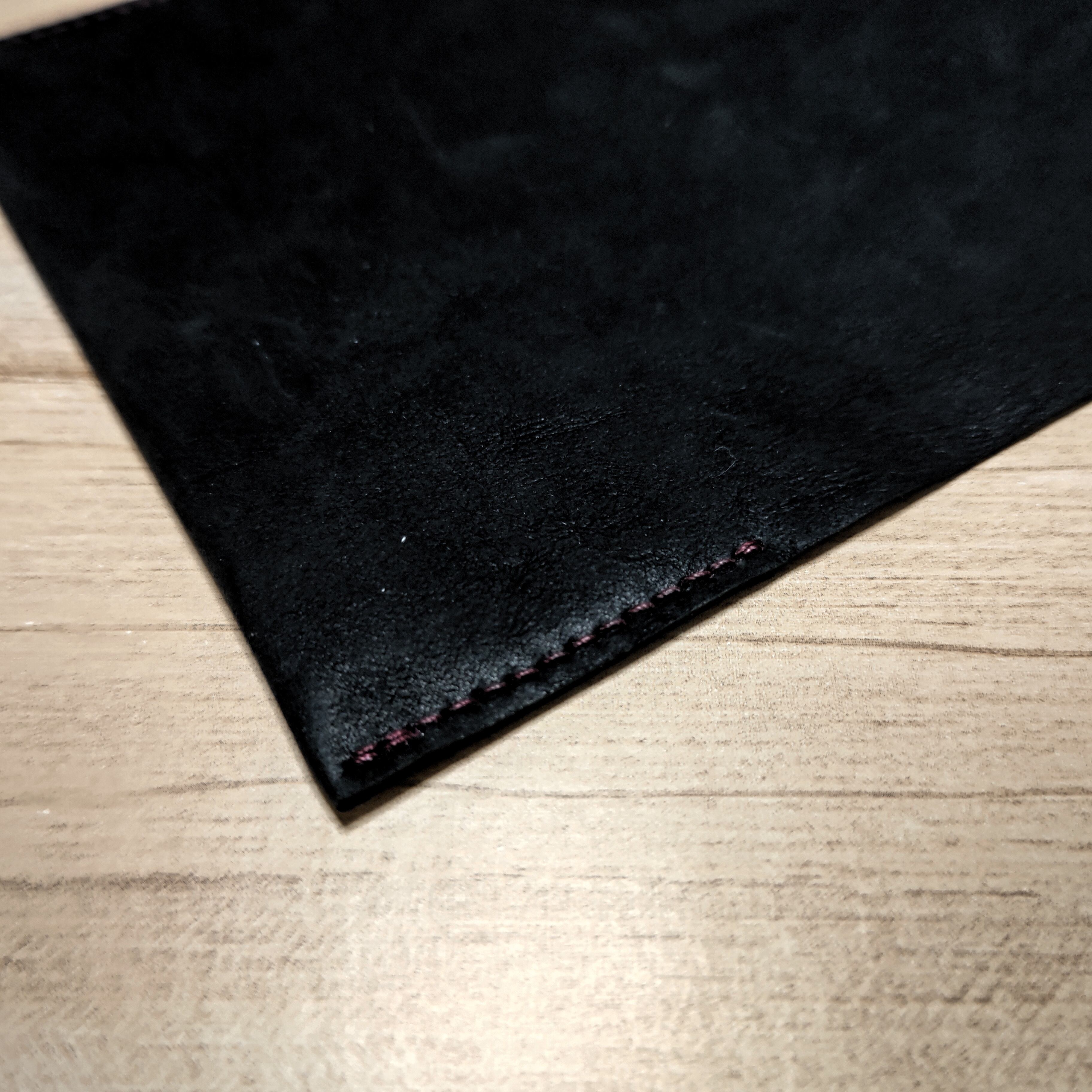 こちらのブックカバーはシンプルなブラックに、ステッチはエンジ、ベルトはレッド仕様なので、かなりカッコいい仕上がりになってます。