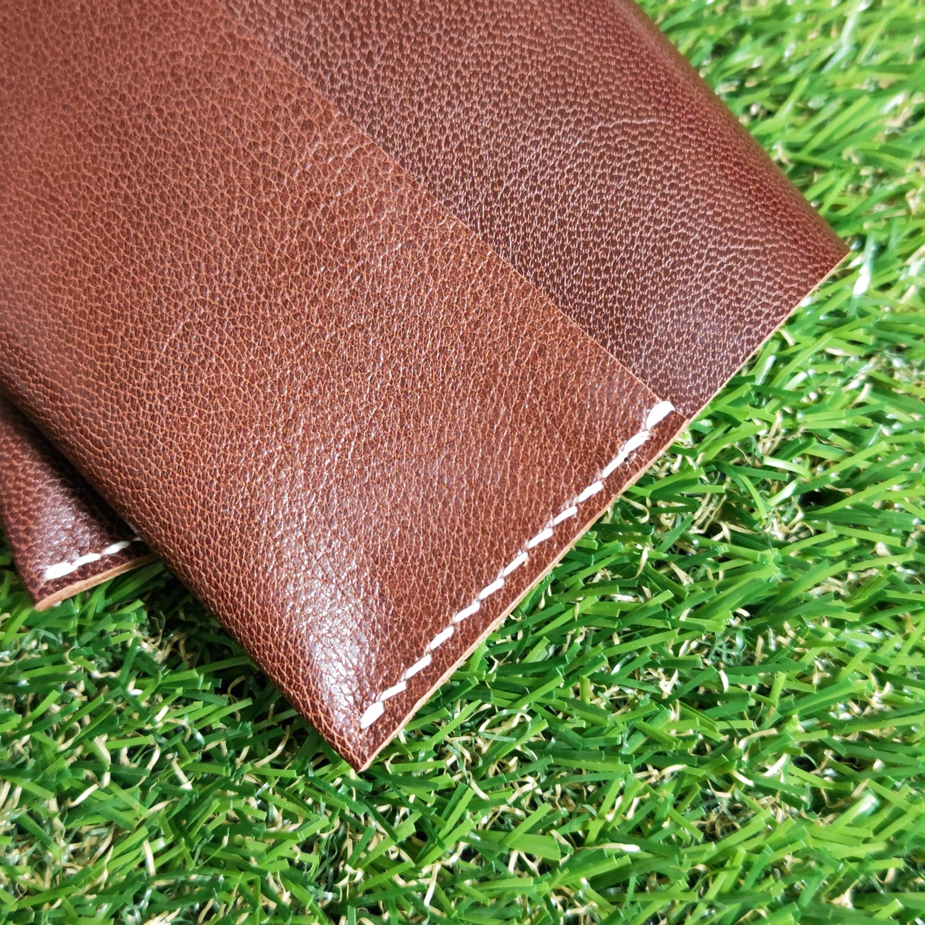 柔らかい革を使用して、シンプルなデザインとブラウンの本体に生なりのステッチが映える仕様です!